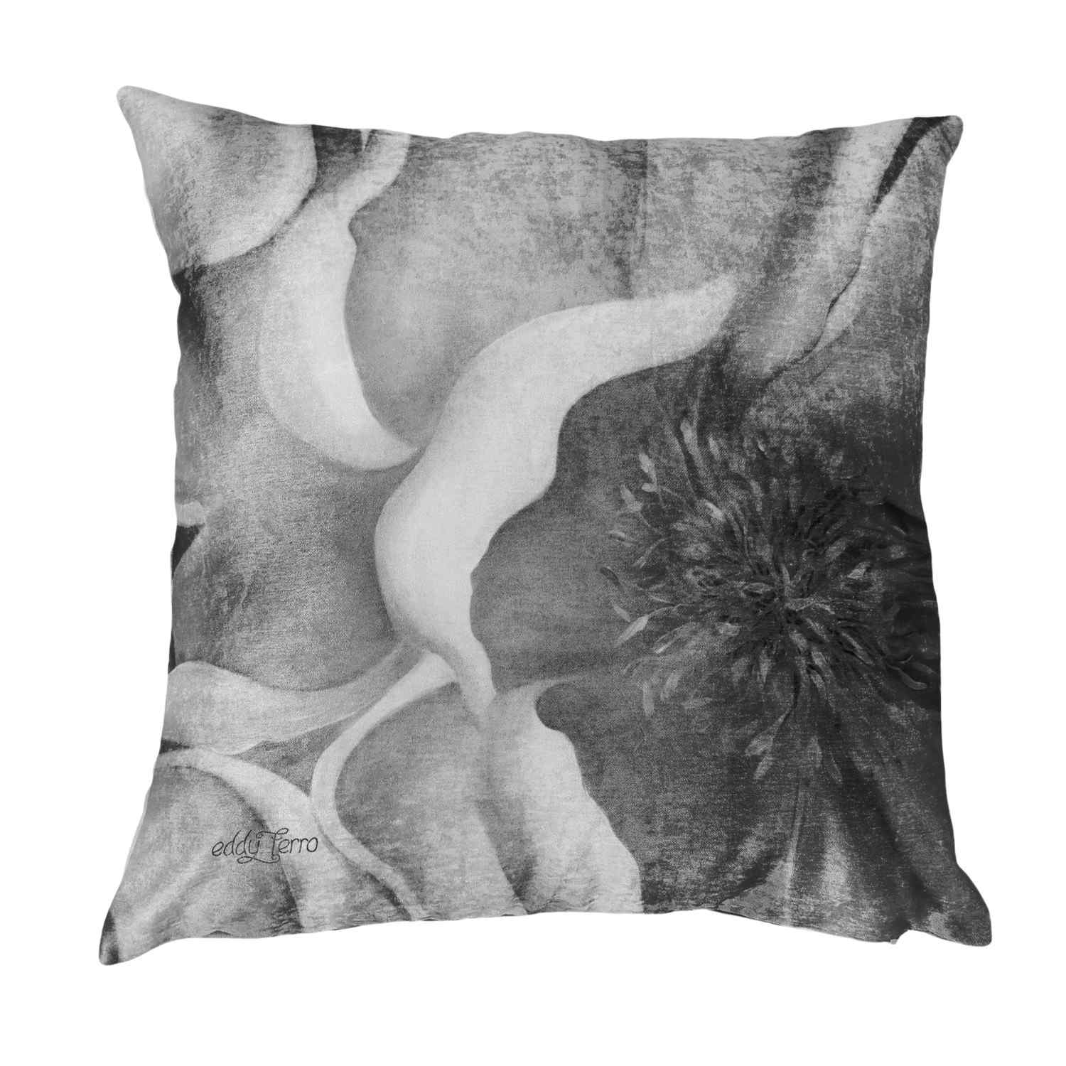 The Dawn Bloom Scatter Cushion is a delicate hand-painted floral design by South African artist Eddy Ferro, printed onto luxurious velvet fabric. Soft and radiant like the first light of morning, this cushion celebrates renewal, warmth, and natural beauty.