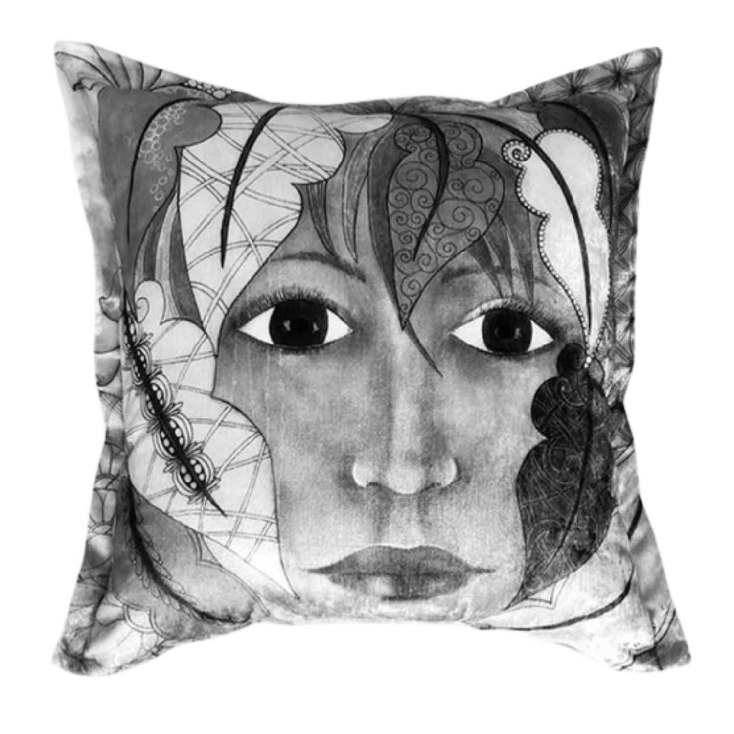 Printed on luxurious velvet, Eddy’s scatters offer both comfort and artistry, making it a versatile choice for interiors that blend modern sophistication with classic charm.