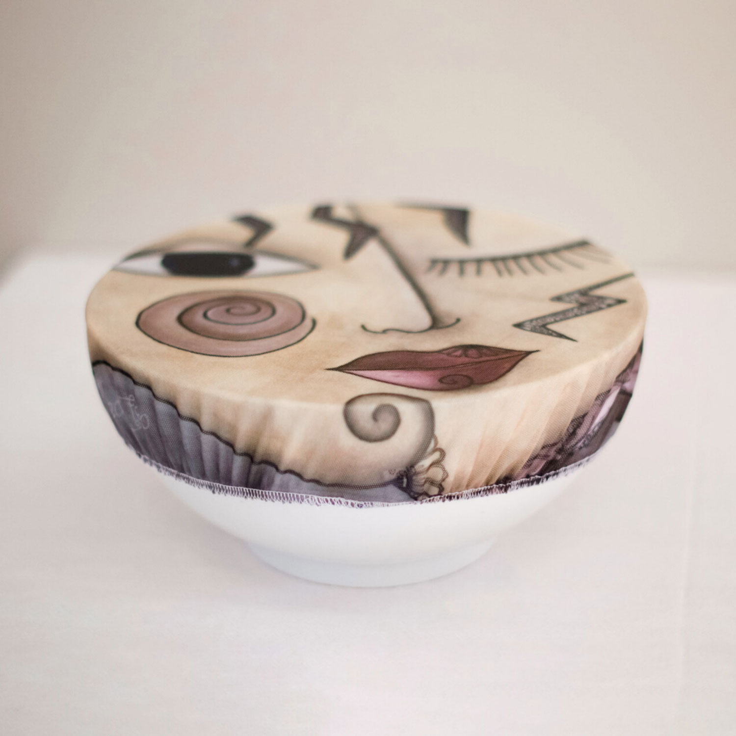 The Ragged Guy Dish Cover is a unique design that has been hand-painted by South African Artist Eddy Ferro and printed onto breathable, round netting material. Perfect for salad bowls, servers and plates, Eddy’s bowl cover fits oval, rectangular and square dishes of all sizes.