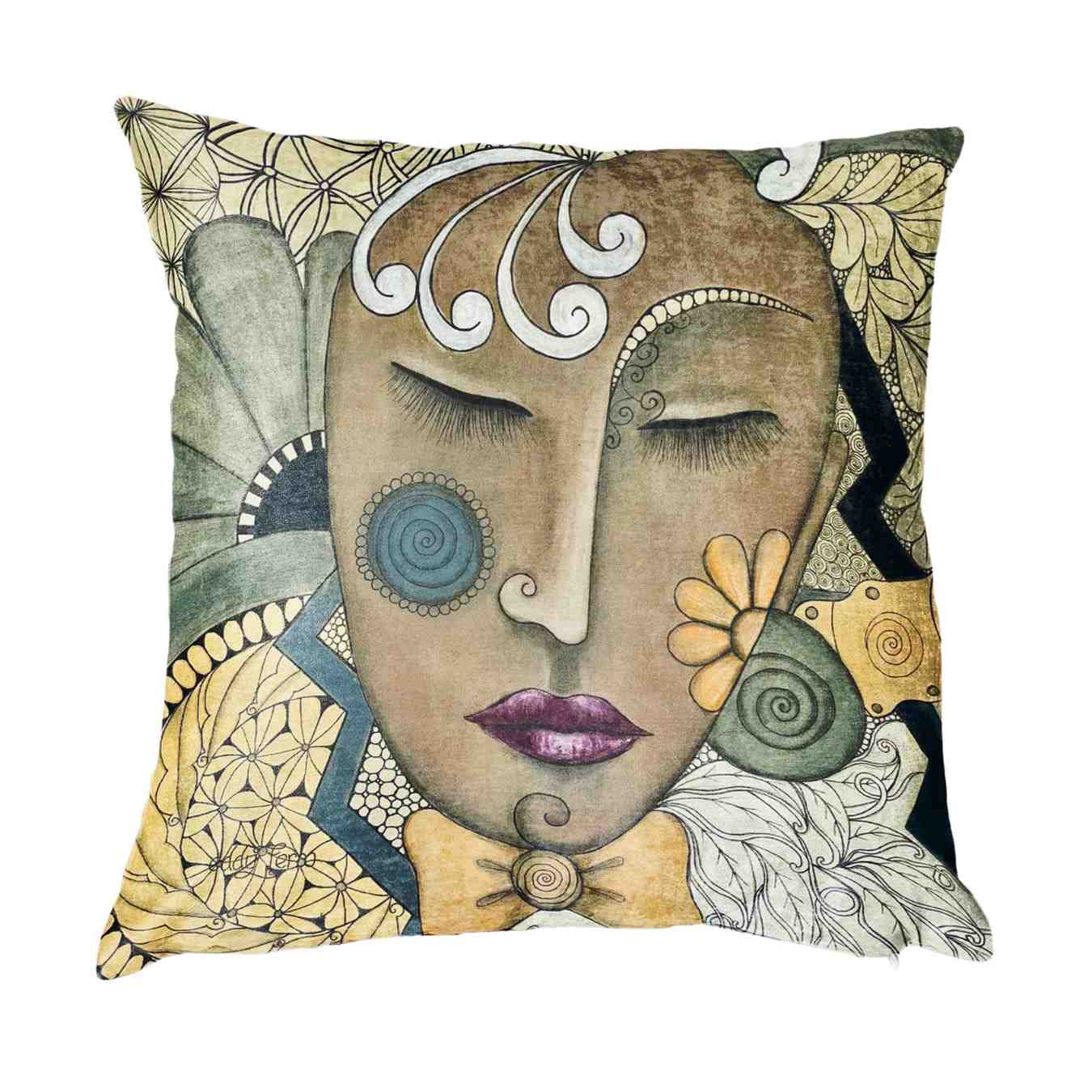 The Sunbeam Scatter Cushion is a unique design that has been hand-painted by South African Artist, Eddy Ferro, and printed onto luxurious velvet.